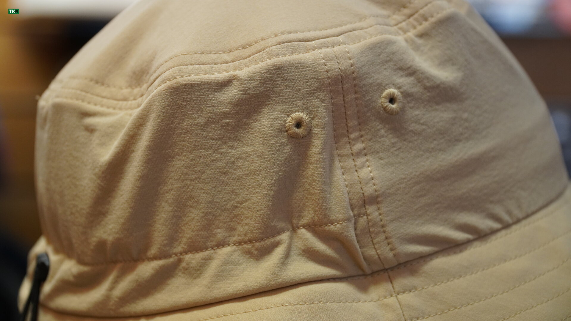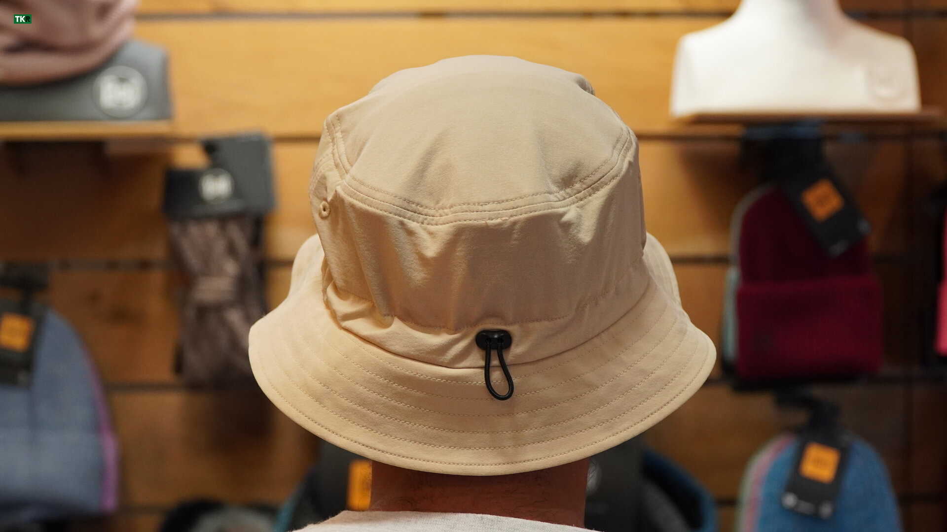 Uno de los detalles más prácticos es su sistema de ajuste trasero, compuesto por una cinta elástica regulable que permite adaptar el gorro de forma precisa a cualquier tamaño de cabeza. Este sistema mejora la sujeción frente al viento o durante el movimiento, garantizando un ajuste firme sin perder comodidad. Además, el Adventure Bucket incluye un bolsillo interior de autoguardado, que permite plegar y guardar el gorro dentro de sí mismo, ocupando un espacio mínimo en la mochila. Este detalle lo convierte en una pieza especialmente útil para quienes buscan optimizar el volumen de su equipo.