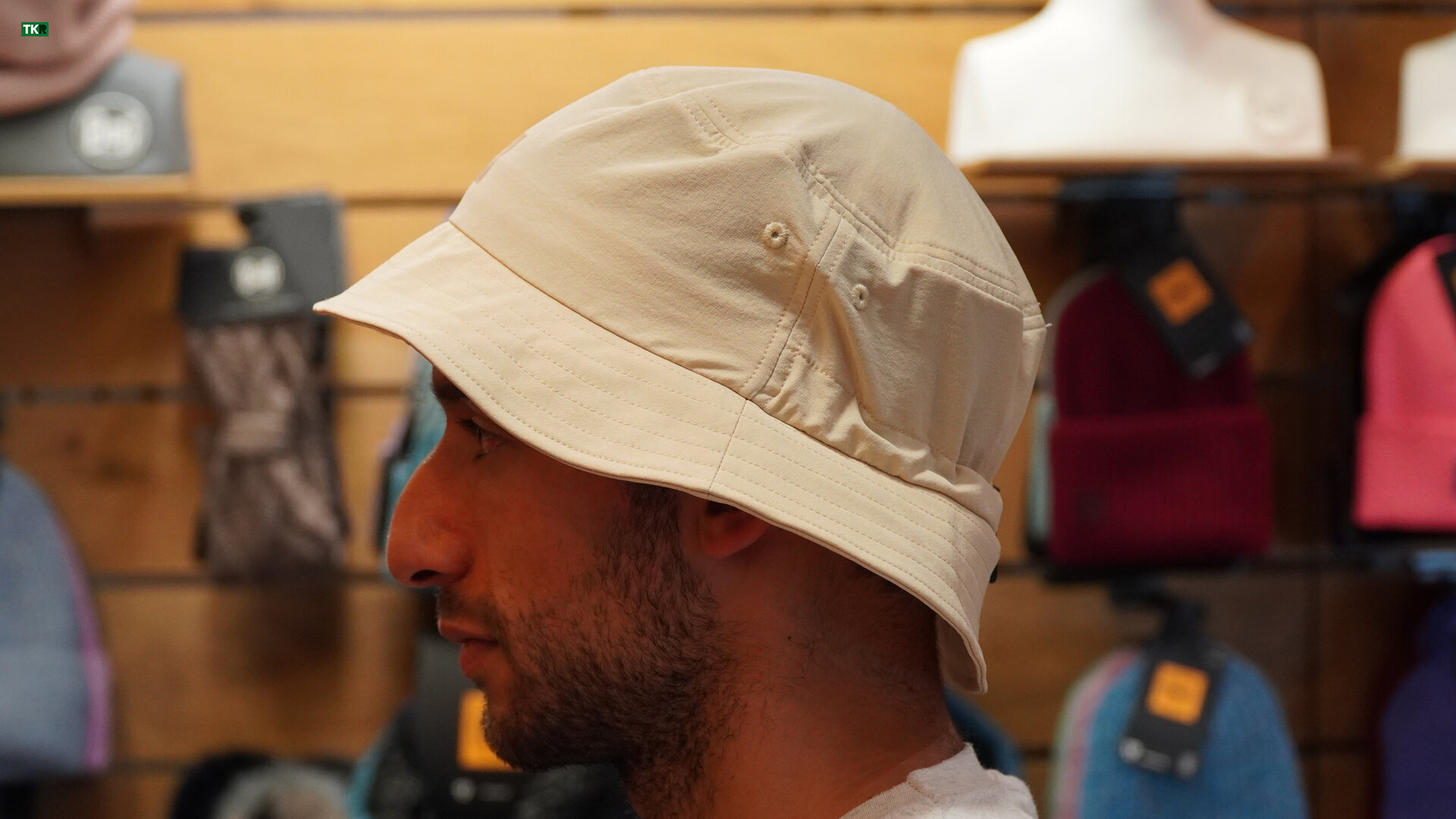 Fabricado con una composición de 90% nylon y 10% elastano, el Adventure Bucket ofrece una gran elasticidad y resistencia al desgaste. Su tejido ligero y flexible proporciona un ajuste cómodo, mientras que la banda interior actúa como zona absorbente del sudor, evitando que la humedad llegue a la frente durante la actividad. Esta construcción permite mantener la cabeza seca y ventilada incluso durante largas jornadas bajo el sol o en movimiento constante.