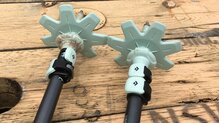 Los Black Diamond Pursuit incorporan dos juegos de arandelas estivales e invernales para un uso en cualquier actividad y durante todo el año. También disponen de dos tipos de puntas, unas de widia para terrenos blandos y unas de goma para terrenos duros o espacios protegidos. Cuenta con herramienta de broca hexagonal de 1,5 mm integrada en el eje para mantenimiento en el campo.
