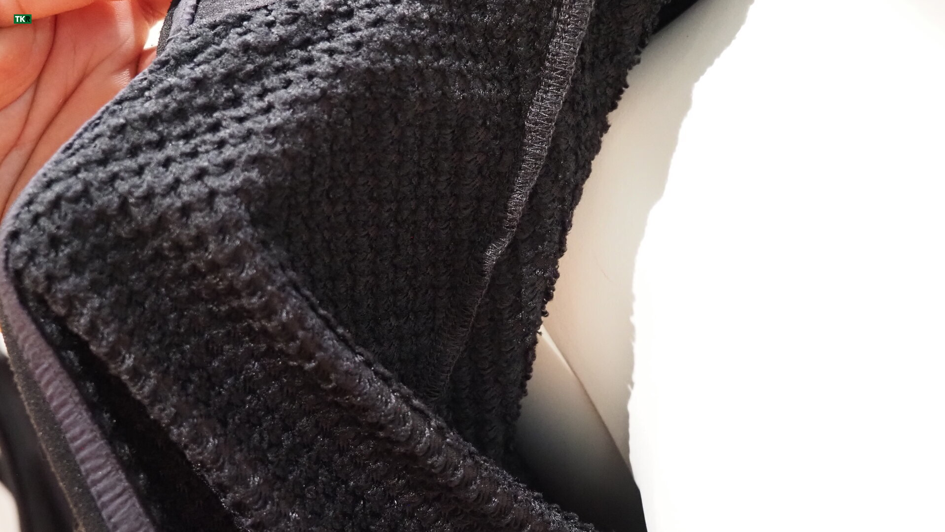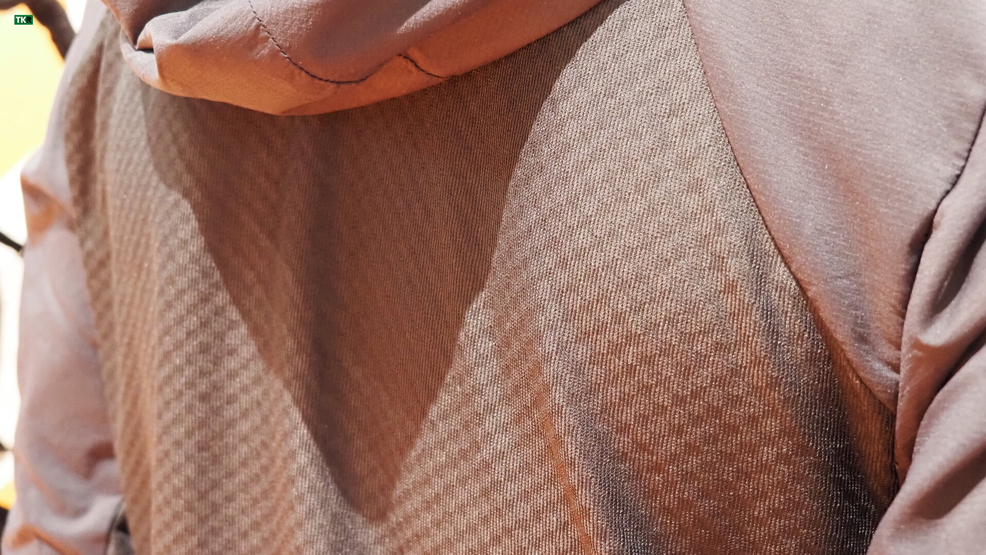 Uno de los aspectos más interesantes del diseño es su distribución estratégica de densidades. En la parte frontal encontramos mayor aislamiento para proteger el torso, mientras que la espalda y los laterales presentan un tejido mucho más fino y ventilado, prácticamente transparente, para favorecer la evacuación del calor y la humedad. Y como estas zonas también son las que sufren más rozamiento con la mochila, la marca ha reforzado toda la parte trasera con tejido Cordura, garantizando mayor resistencia a la abrasión y al desgaste prolongado.