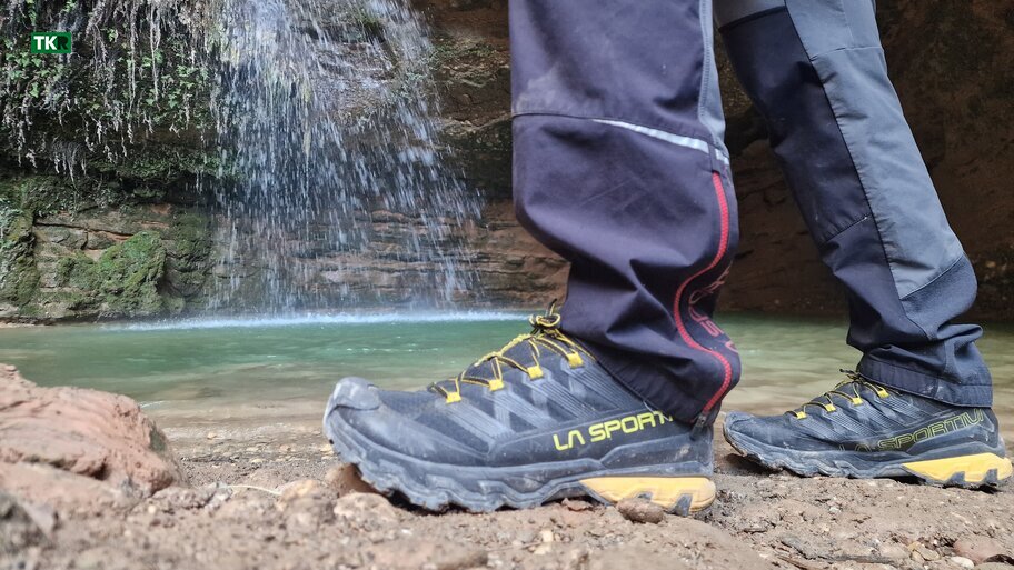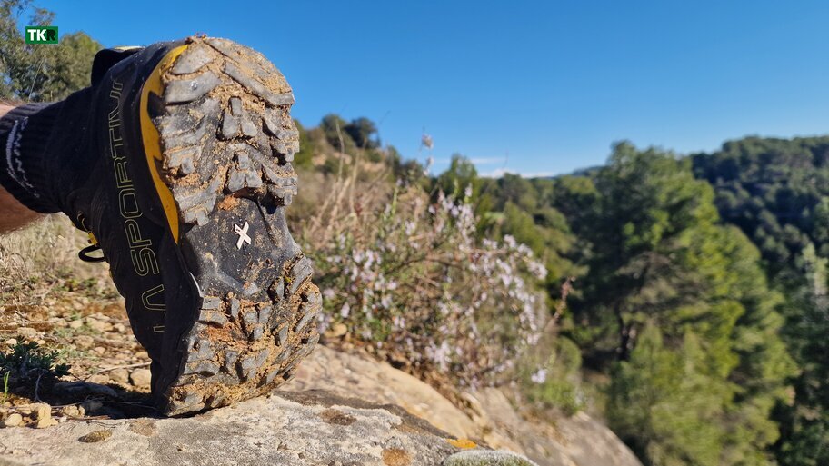 El comportamiento de La Sportiva Ultra Raptor 3 varía según lo que pisen, pero siempre con un denominador común: la solvencia. En las placas de conglomerado de Montserrat, que son auténticas pruebas de fuego para la adherencia, nos sentimos como si lleváramos pies de gato. La capacidad del compuesto FriXion White para morder la roca lisa nos permitió progresar con una confianza absoluta. Pero es en el terreno mixto y "sucio", como el que encontramos en la riera de Cabrera d'Anoia, donde La Sportiva Ultra Raptor 3 saca a relucir su verdadero carácter todoterreno.