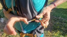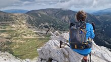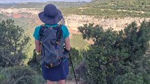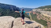 En una segunda ruta por los acantilados de Tavertet, con un terreno más uniforme y no tanto desnivel, nos olvidamos de la carga de la mochila, es tanta la comodidad y el ajuste, que nuestra atención pudo estar absolutamente focalizada en el paisaje, la roca, los colores, las vistas ... La calor intensa que hacía, nos permitió volver a agradecer el sistema de hidratación de la Osprey Talon Velocity 20, utilizando los bidones blandos de los laterales y la manguera de la bolsa de agua. También fue aquí donde pudimos comprobar que el respaldo flexible y con materiales que facilitan la transpirabilidad de la Osprey Talon Velocity 20 nos mantuvo la espalda más ventilada y fresca.