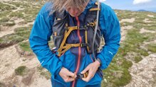 La primera prueba a superar la situamos en Vallter, con la preciosa ruta de “La Olla de Vallter”. Unas cuantas horas de andar sobre diferentes terrenos. Al subir la primera cima El Gra de Fajol Petit, el desnivel fue considerable, con grimpada y terreno con grandes piedras, sumándole el viento que nos acompañó, todo hizo que ja pudiéramos comprobar que la mochila, que previamente habíamos ajustado desde sus múltiples opciones, formara parte de nuestro cuerpo, perfectamente sujeta, sin ninguna vacilación, pérdida de estabilidad, ni punto de presión. Salimos con bastones pero en muchos tramos confiamos más en las manos como puntos de apoyo, y aquí es cuando agradecimos la facilidad del sistema Stow-On-The-Go para colocar los palos en la mochila. Seguimos dirección al Gra de Fajol y el pico de Bastiments, ya en las cimas y pasando por los cuellos, agradecimos tener el cortavientos colocado en el bolsillo delantero de la mochila. Seguimos hasta el Bacivers y Pic de la Dona, donde en muchos tramos pudimos acelerar el ritmo, la mochila siguió pegada a nuestro cuerpo, perfectamente adaptada a nuestra espalda, cintura, y bien sujeta en nuestra parte frontal. Fueron horas, y la facilidad de tener una hidratación tan cómoda, fácil y constante se hace imprescindible, además de la accesibilidad al móvil y pequeños tentempiés.