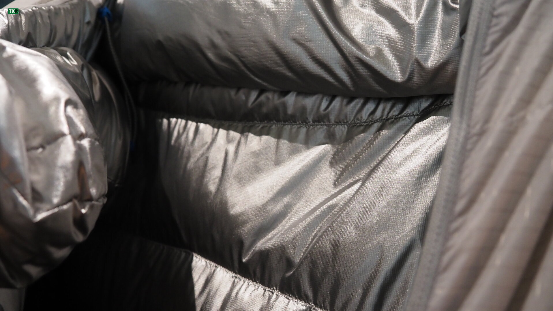 Además, la marca introduce una capa interna reflectante que ayuda a conservar el calor corporal, redirigiendo parte de la radiación térmica hacia el interior del saco. En el exterior encontramos un tejido Pertex Quantum de 10 deniers, ultraligero, resistente al viento y con un tacto sorprendentemente suave. Este material, eso sí, exige un cierto cuidado, ya que su baja densidad implica una durabilidad algo menor frente a la abrasión o el uso intensivo.