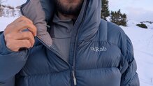 La Rab Neutrino Pro Jacket está construida con materiales de alta calidad, algo que se percibe tanto al tacto como en el uso real en condiciones invernales exigentes. El tejido exterior utiliza Pertex Quantum Pro de 20 deniers, un material ligero pero resistente, tratado con un acabado DWR libre de fluorocarbonos que hace que la nieve y la humedad resbalen eficazmente sobre la superficie. Durante nuestras pruebas, tanto con nieve seca como con nieve más húmeda, el tejido exterior ha demostrado un comportamiento excelente, evitando que la humedad penetre y protegiendo el aislamiento interior.