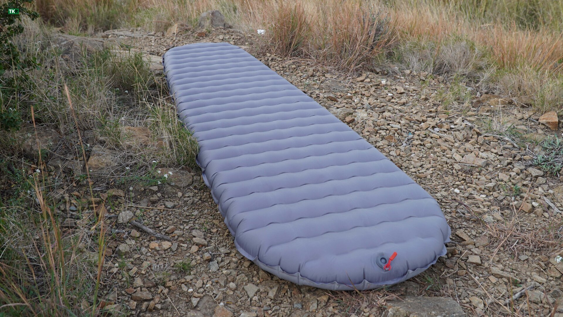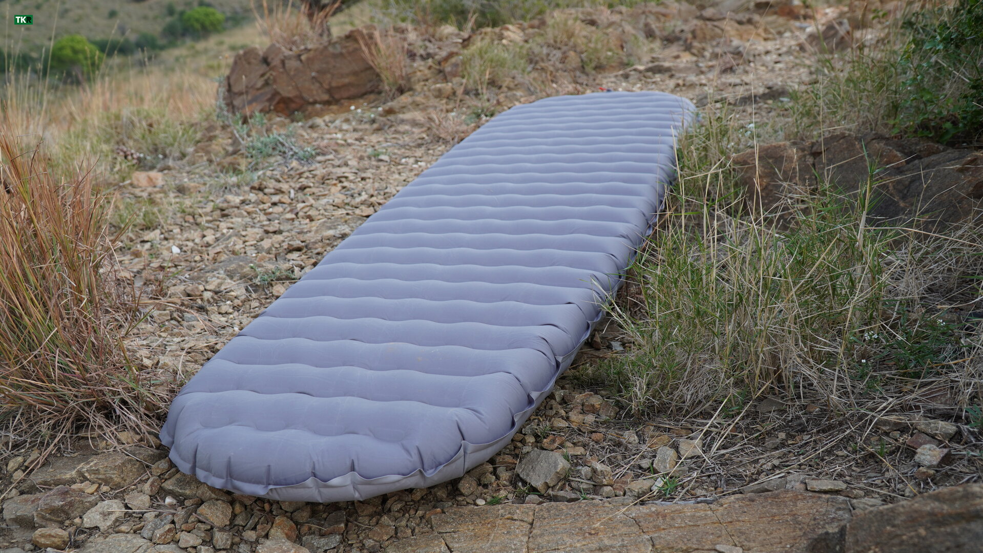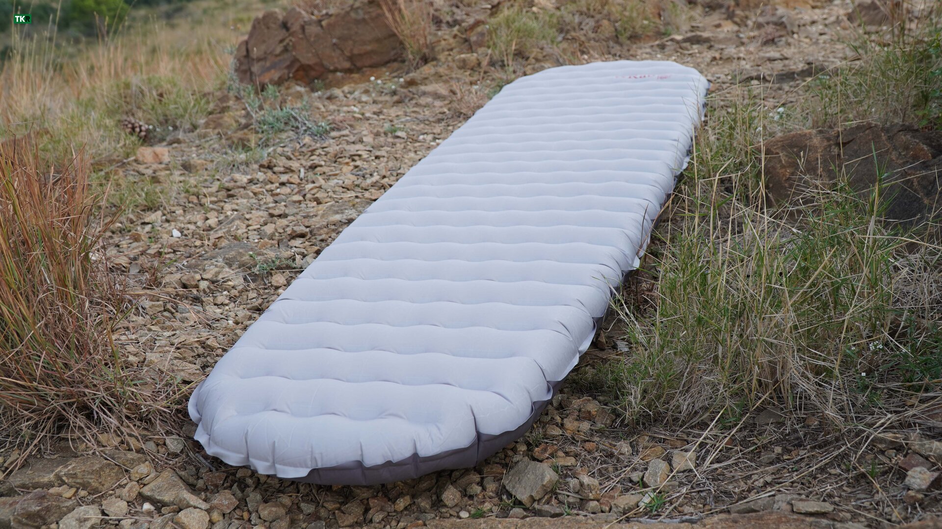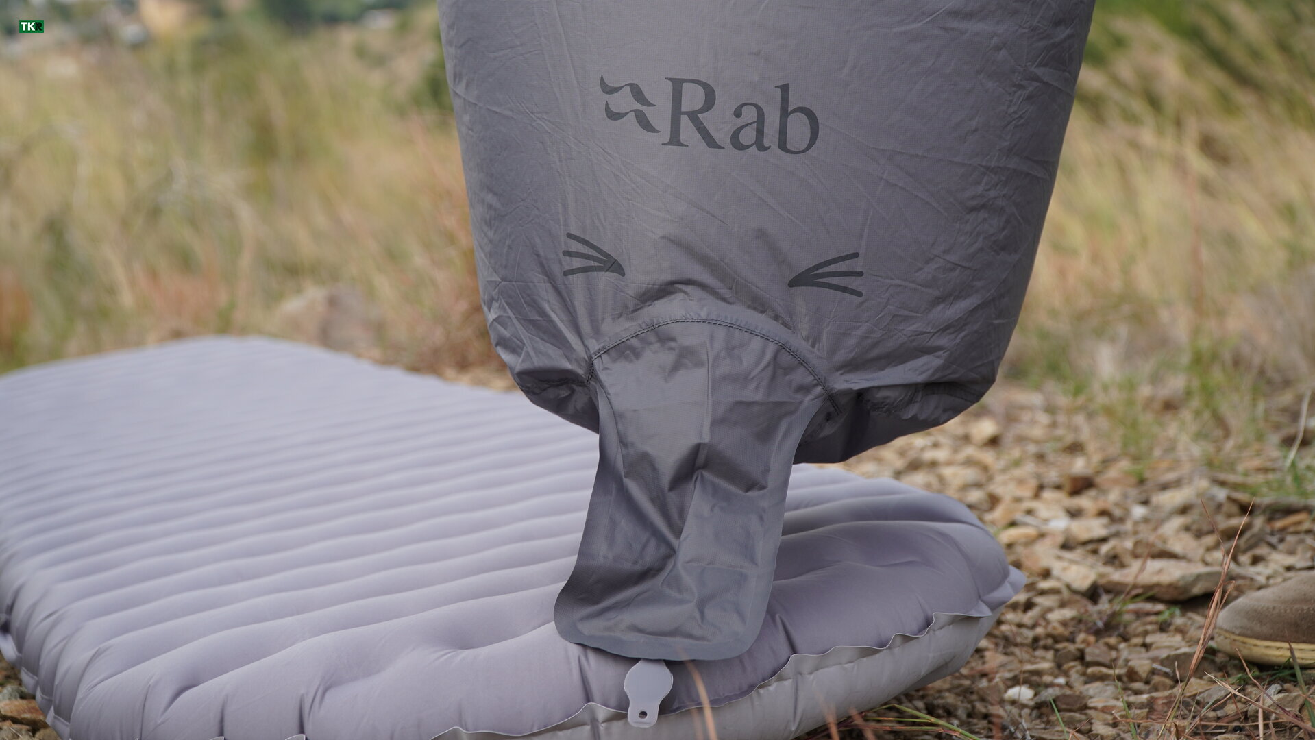 Rab ha combinado en este modelo varias de sus tecnologías más avanzadas. En su interior, la estructura de cámaras de aire desfasadas interrumpe la convección del aire, manteniendo el calor estático dentro de la esterilla. Además, incorpora dos capas del sistema TILT (Thermo Ionic Lining Technology) , un recubrimiento interno reflectante que reduce la pérdida de calor radiante sin añadir peso ni rigidez, logrando una eficiencia térmica excepcional para su categoría. Al tacto, el material recuerda sutilmente a una manta térmica, y no es casual: ese efecto metálico procede precisamente de las láminas reflectantes que refuerzan el aislamiento.