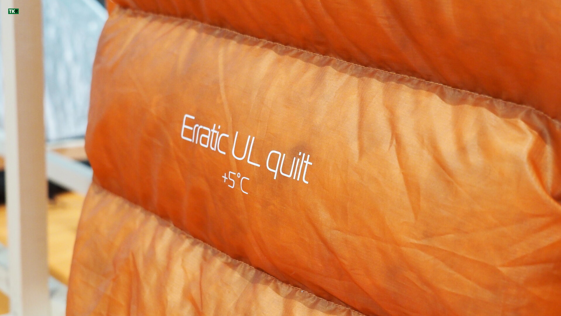 El Erratic UL Quilt está relleno con plumón natural 850+ cuin, un nivel de calidad altísimo que garantiza una excelente capacidad térmica con un aislamiento muy eficiente para su peso. Su temperatura confort es de +5 °C, lo que lo convierte en una opción ideal para travesías de primavera y verano, o incluso para tres estaciones si se combina con la ropa adecuada y una esterilla de buen aislamiento, como la Lightcore UL 3.1R de la misma marca, con la que forma un conjunto ultraligero perfecto.