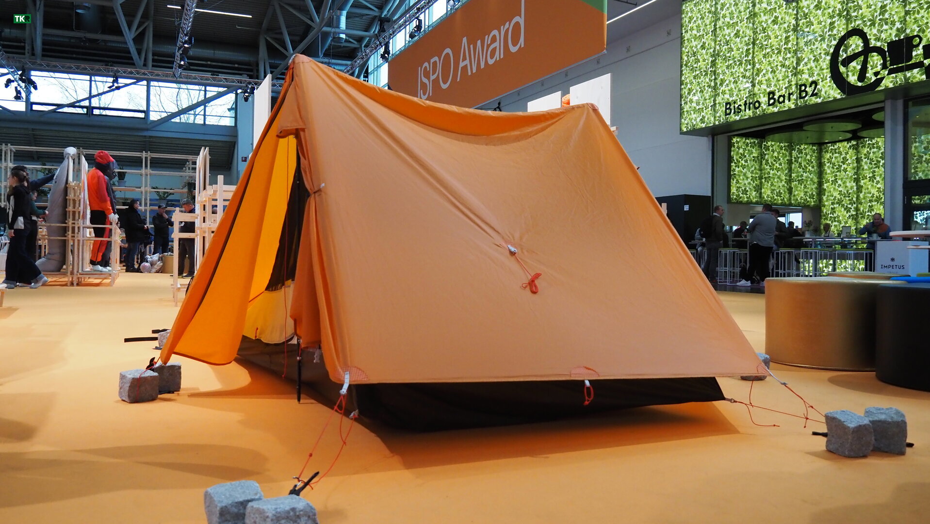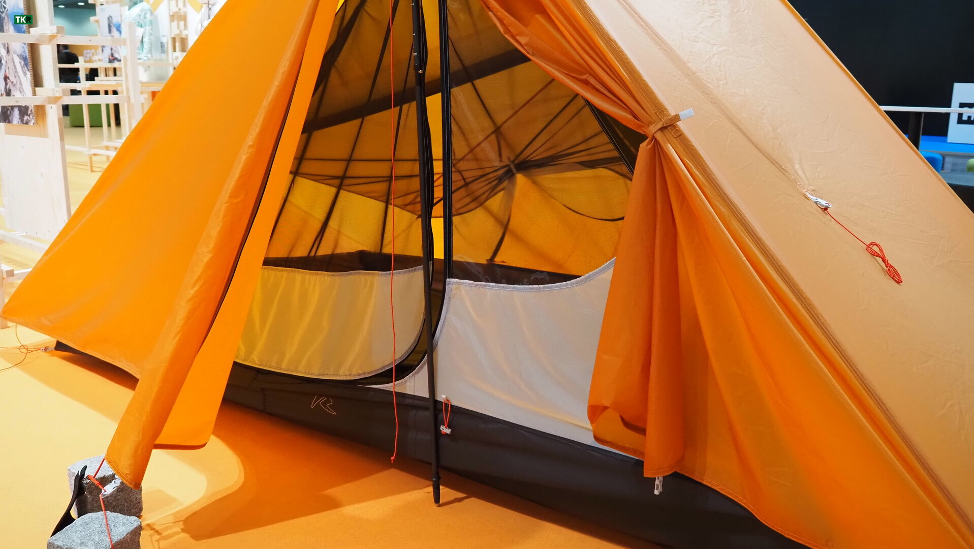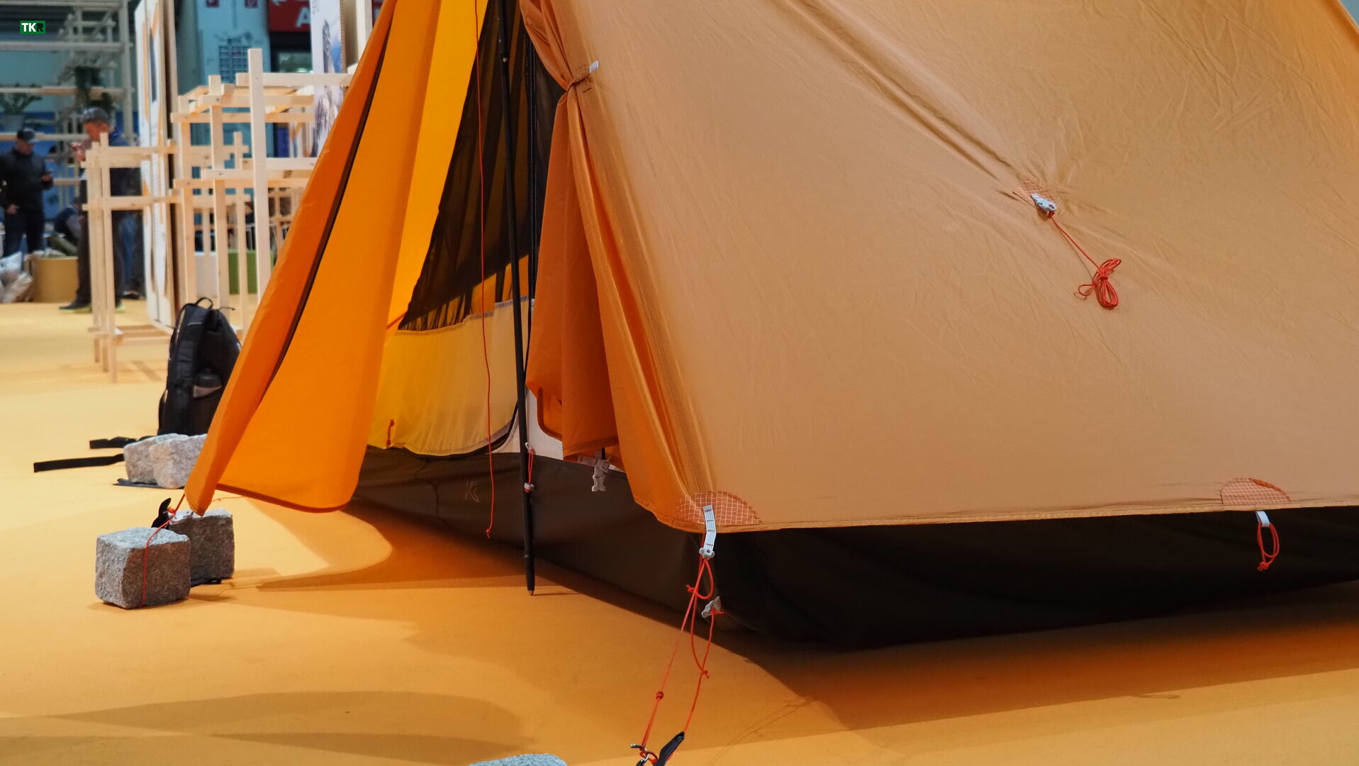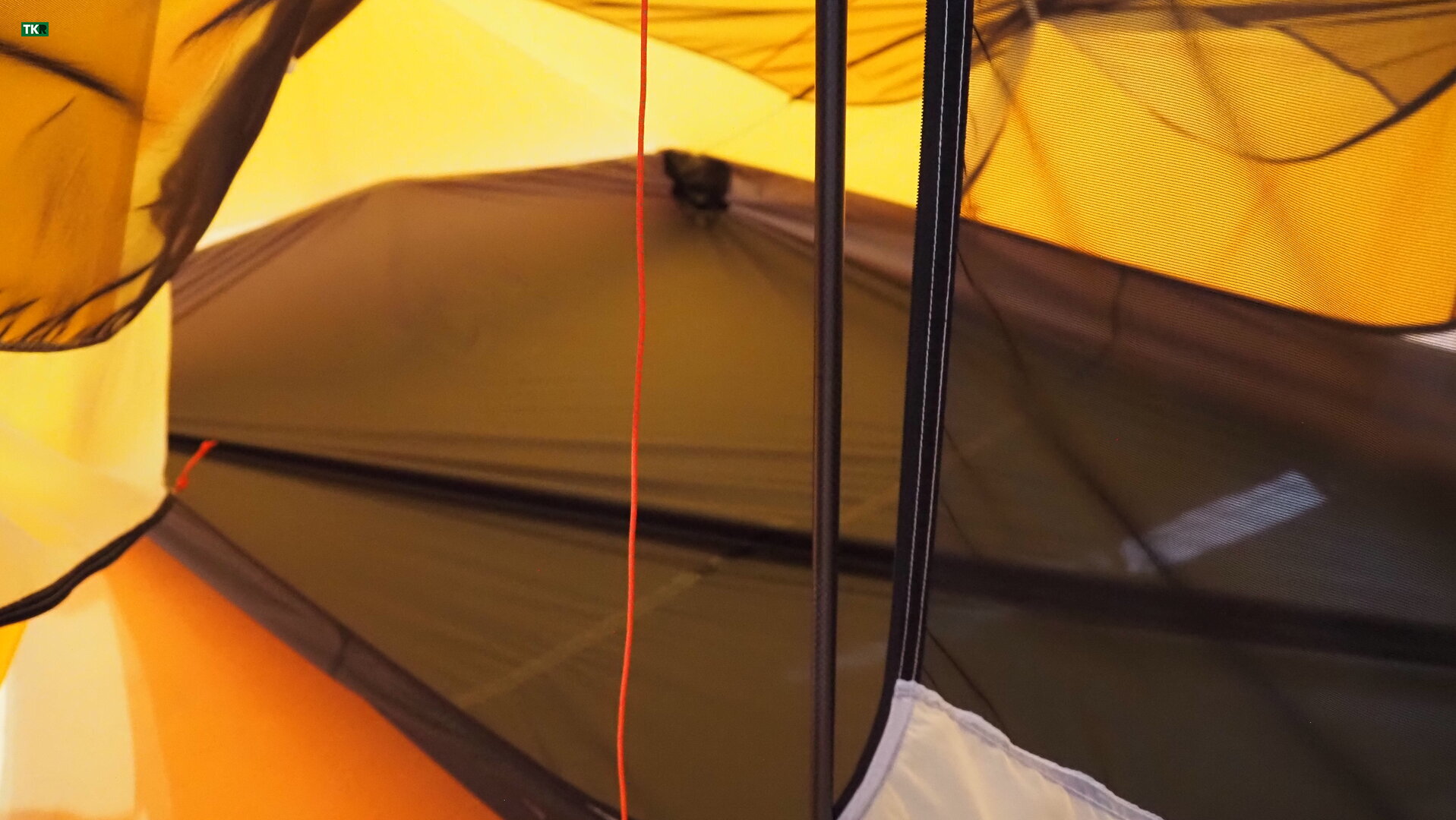 El sistema de montaje utiliza los bastones de trekking como estructura principal, reduciendo el peso total sin comprometer la estabilidad. A ello se suma una varilla de carbono ultraligera situada en la zona de los pies, que eleva ligeramente el techo para evitar que el saco de dormir toque la tela exterior, mejorando así la transpiración y reduciendo la acumulación de humedad. Este detalle, pequeño pero clave, demuestra el cuidado diseño de la marca danesa.