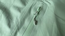Las cremalleras son espectaculares, termo selladas, impermeables, con un cordino para facilitar su uso con las manos mojadas o guantes y por el interior con una tela impermeable que asegura más aún que no entre agua o viento al interior. En ningún momento han fallado en su uso ni se han quedado atascadas o pillado ese borde de tela interior.