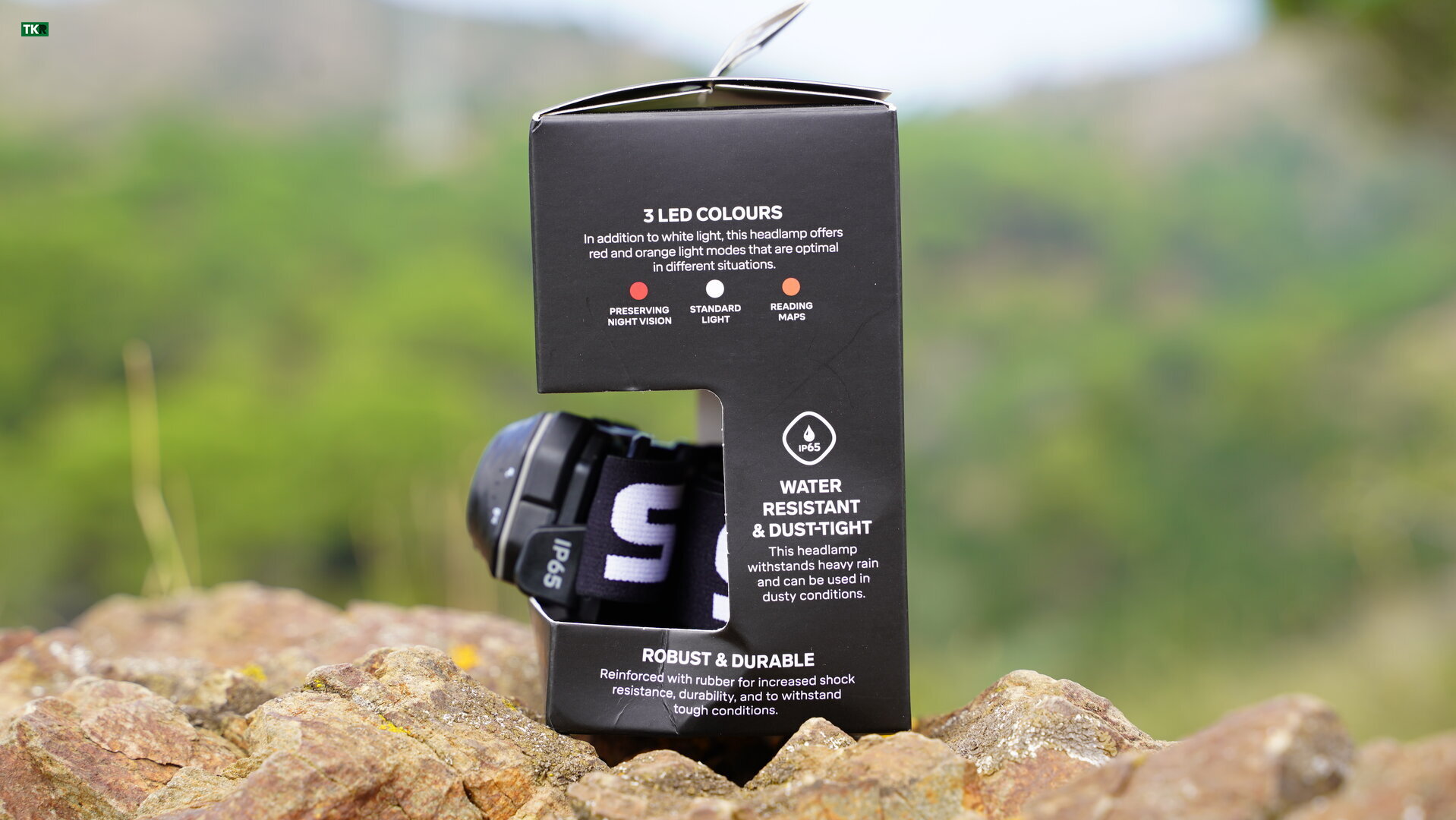 En cuanto a potencia lumínica, el frontal ofrece tres niveles de intensidad: 500 lúmenes en modo máximo, 100 lúmenes en modo intermedio y 15 lúmenes en modo mínimo o de lectura, este último pensado para optimizar la autonomía o para tareas en campamento. Además, incluye una luz roja para mantener la adaptación visual nocturna y una luz naranja, especialmente útil para la lectura de mapas durante actividades nocturnas o en refugio. Todo ello gestionado mediante un control sencillo e intuitivo, con un sistema de bloqueo que evita encendidos accidentales durante el transporte.